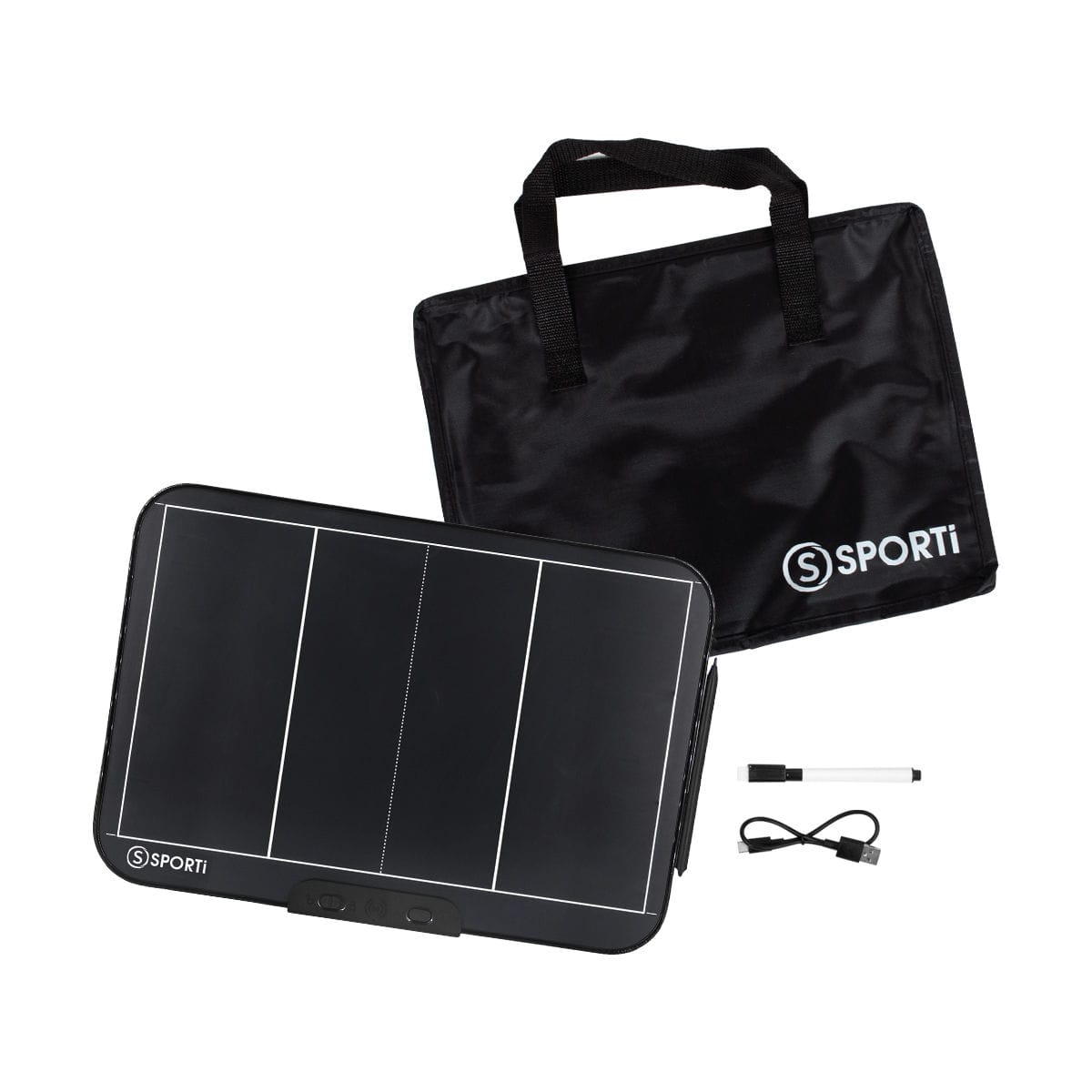 Le kit tablette de coaching LCD 16’’ Sporti inclut tablette, sac de transport, stylet et accessoires pour dessiner et expliquer vos stratégies de volley facilement.